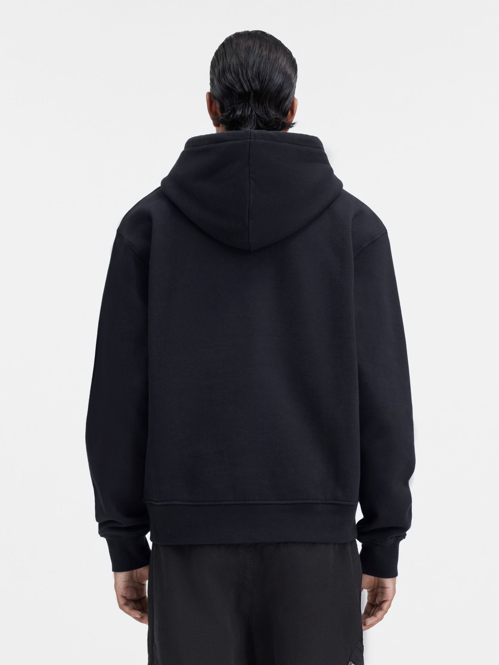 Le Hoodie Jacquemus Noir Brodé apporte une version plus contrastée de ce modèle iconique. Son coloris noir profond met en valeur le logo Jacquemus brodé sur la poitrine, pour une présence élégante et affirmée. Il conserve les mêmes caractéristiques : coupe classique, capuche réglable par cordon, poche kangourou, et finitions côtelées. Fabriqué en 100 % coton biologique, il allie confort, durabilité et style au quotidien.